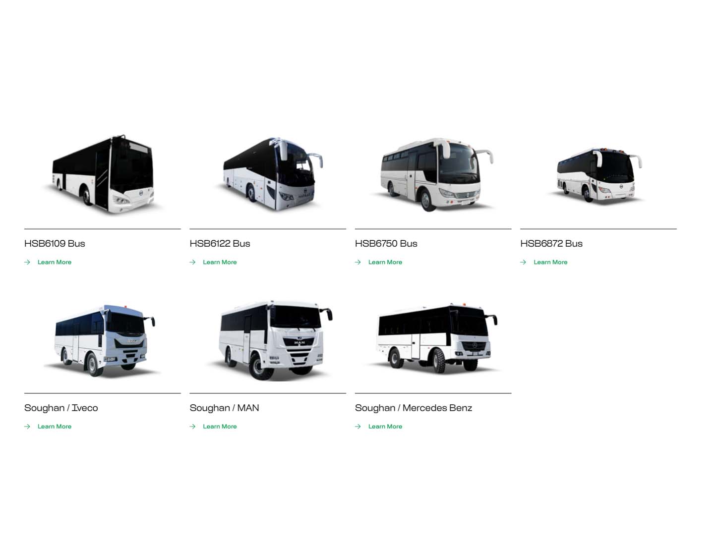 Hafilat Soughan Bus Air Conditioner is used in Soughan/Iveco, Soughan/MAN, and Soughan/Mercedes-Benz buses.